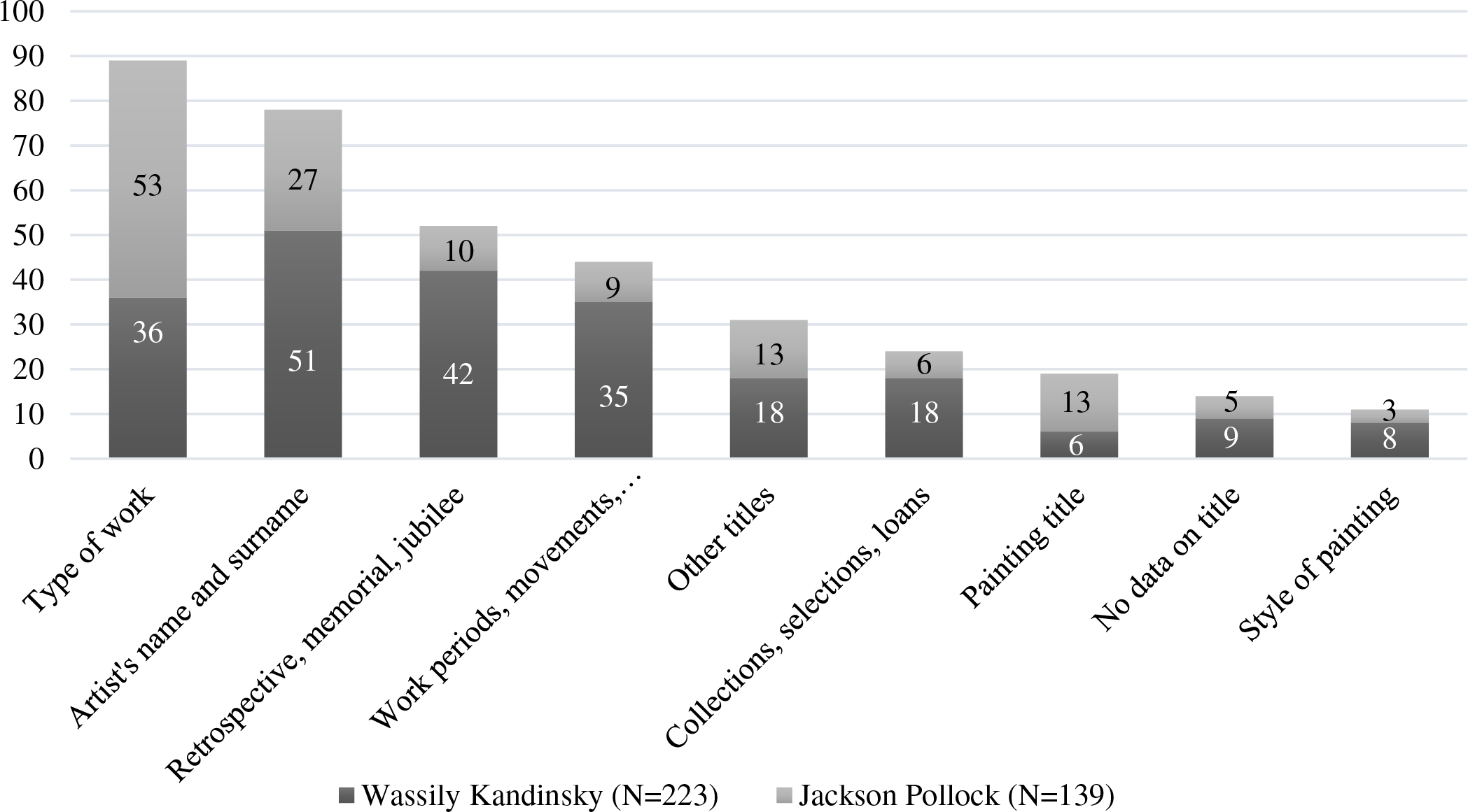 Fig. 4. Solo exhibitions of Wassily Kandinsky and Jackson Pollock by title, comparatively.